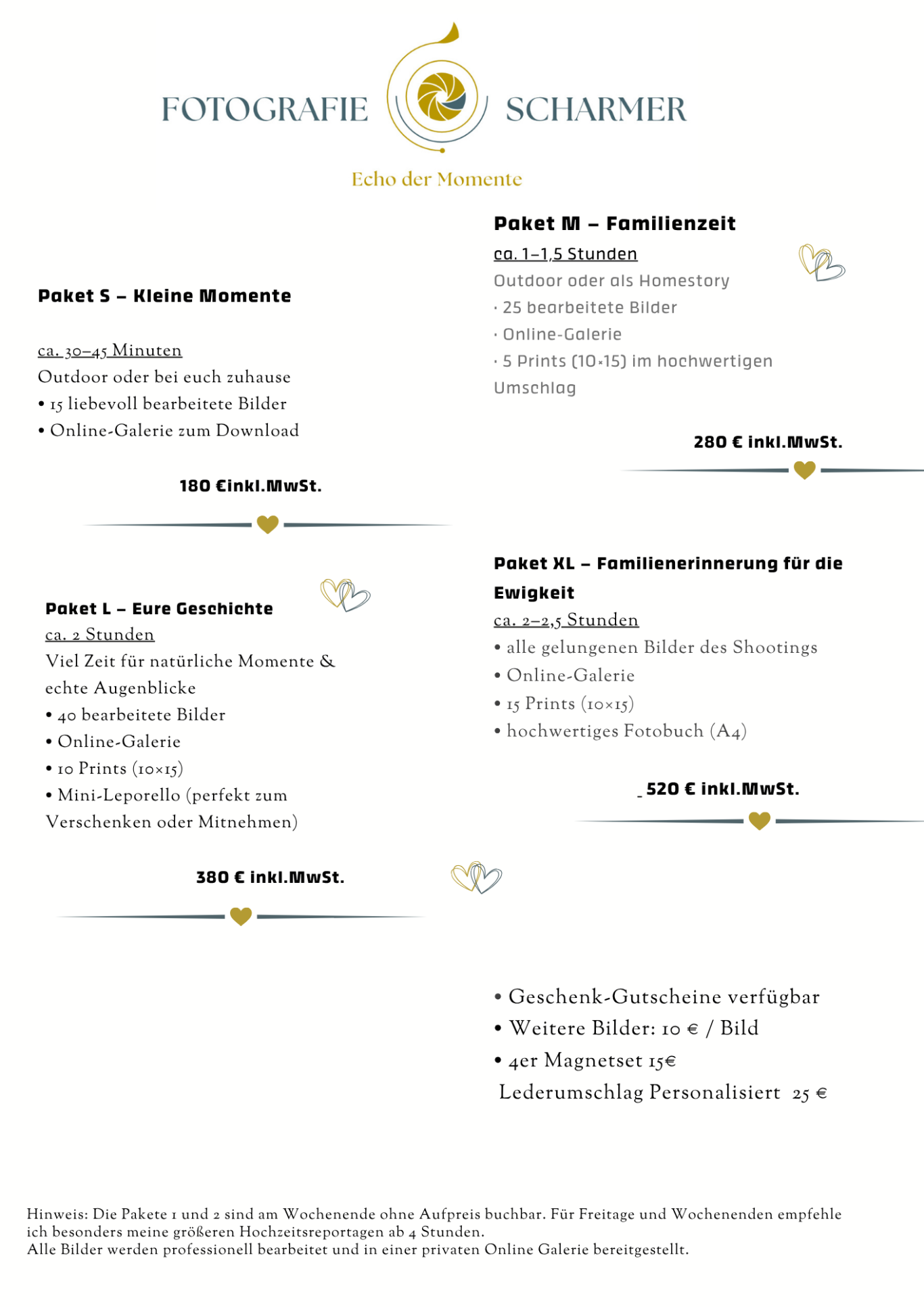 Falls ihr noch weitere Fragen habt, meldet euch gerne – ich freue mich darauf, eure besonderen Momente mit euch zu planen! ❤️
